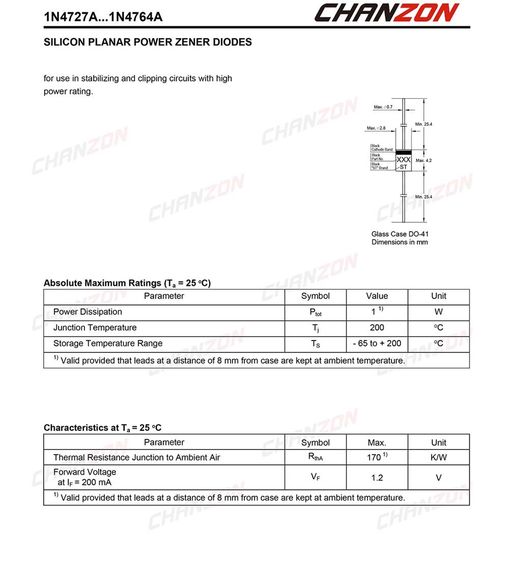 - Max. Forward Voltage: Power Dissipation : 1Watt