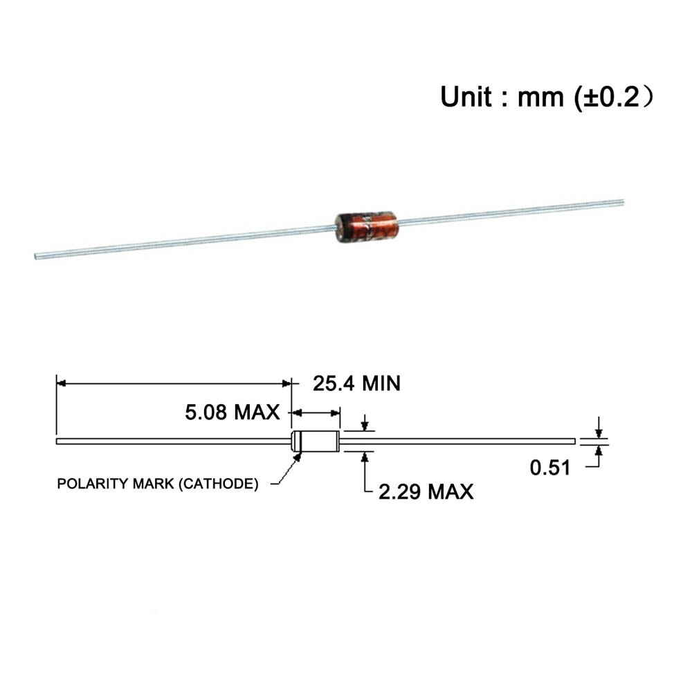 - Model Number: BZX55C36 (IN5258B 1N5258) 500 mW – 36 Volt