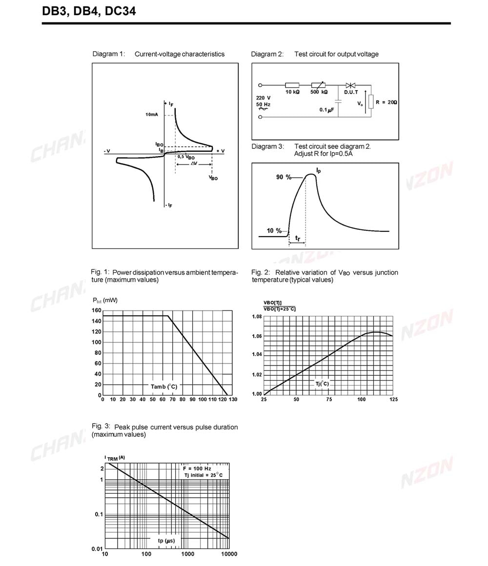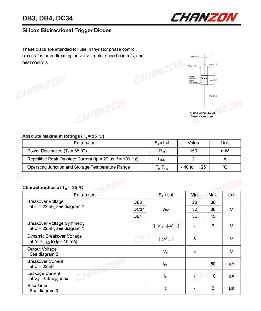 - Max. Reverse Voltage: Specs: DB3 2 Amp / 32 Volt / 150 mW