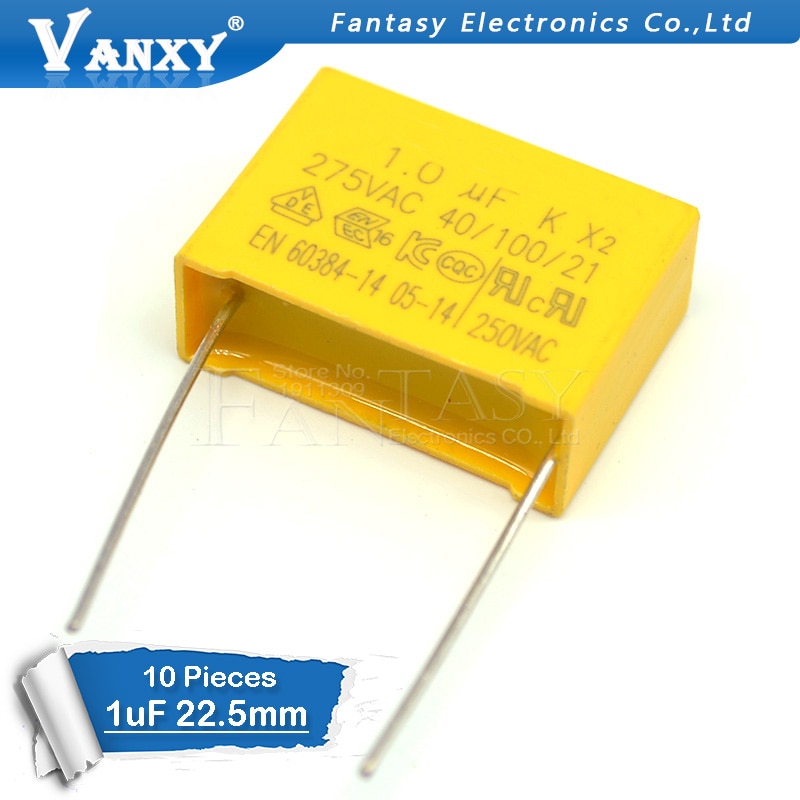 Brand Name: vanxy Origin: CN(Origin) Application: OTHER Package Type: Through Hole Rated Voltage: 275v Model Number: 1uF Structure: Fixed Capacitor Type: Polypropylene Film Capacitor Color: Yellow pitch: 22.5mm Here are the links to the 275VAC X2 capacitor 0.01uf 275VAC 10NF pitch=10mm 0.47uf 275VAC 470NF pitch=15mm 0.022uf 275VAC 22NF pitch=10mm 0.47uf 275VAC 220NF pitch=22.5mm 0.1uf 275VAC 100NF pitch=10mm 0.68uf 275VAC 680NF pitch=22mm 0.1uf 275VAC 100NF pitch=15mm 1uf …