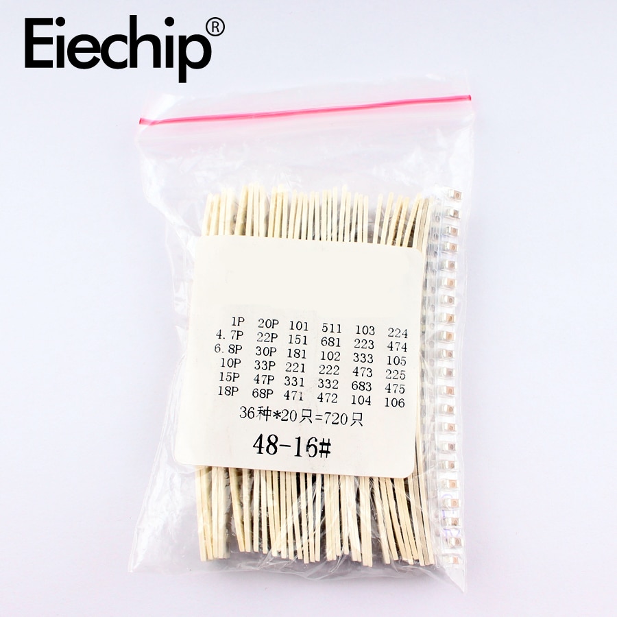 6Values*20pcs 1pF-10uF Electronic Capacitor set 1206 SMD Ceramic Capacitor assortment kit 22PF 47PF 22NF 100NF 2.2UF 4.7UF Capacitors