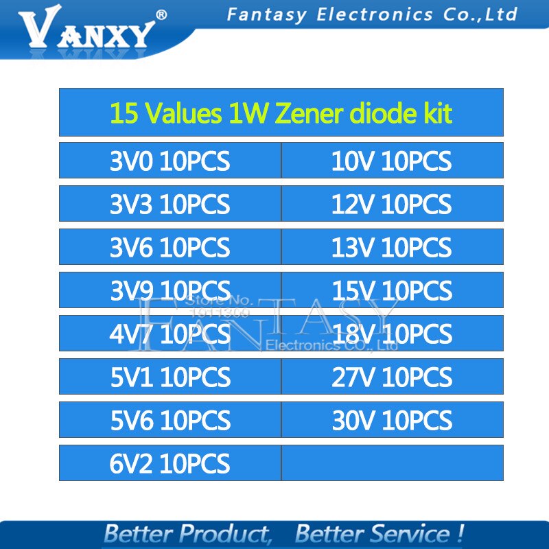 Brand Name: vanxy Type: Zener Diode Origin: CN(Origin) Condition: New Max. Forward Current: STANDARD Max. Forward Voltage: STANDARD Max. Reverse Current: STANDARD Model Number: 3V-30V Max. Reverse Voltage: STANDARD Package Type: Through Hole