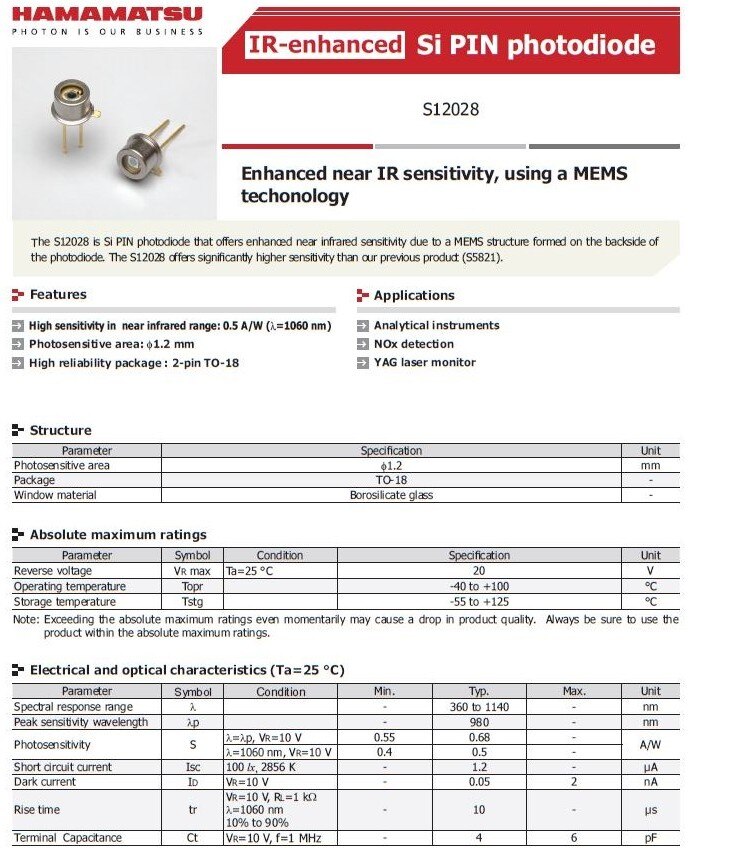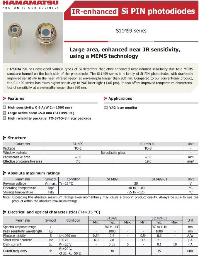 1PCS Hamamatsu Infrared Enhanced Silicon PIN Photodiode S11499 S11499-01 S12028 Type: Modem Cable Package: Yes Model Number: S11499 Products Status: IN STOCK 1PCS Hamamatsu Infrared Enhanced Silicon PIN Photodiode S11499 S11499-01 S12028