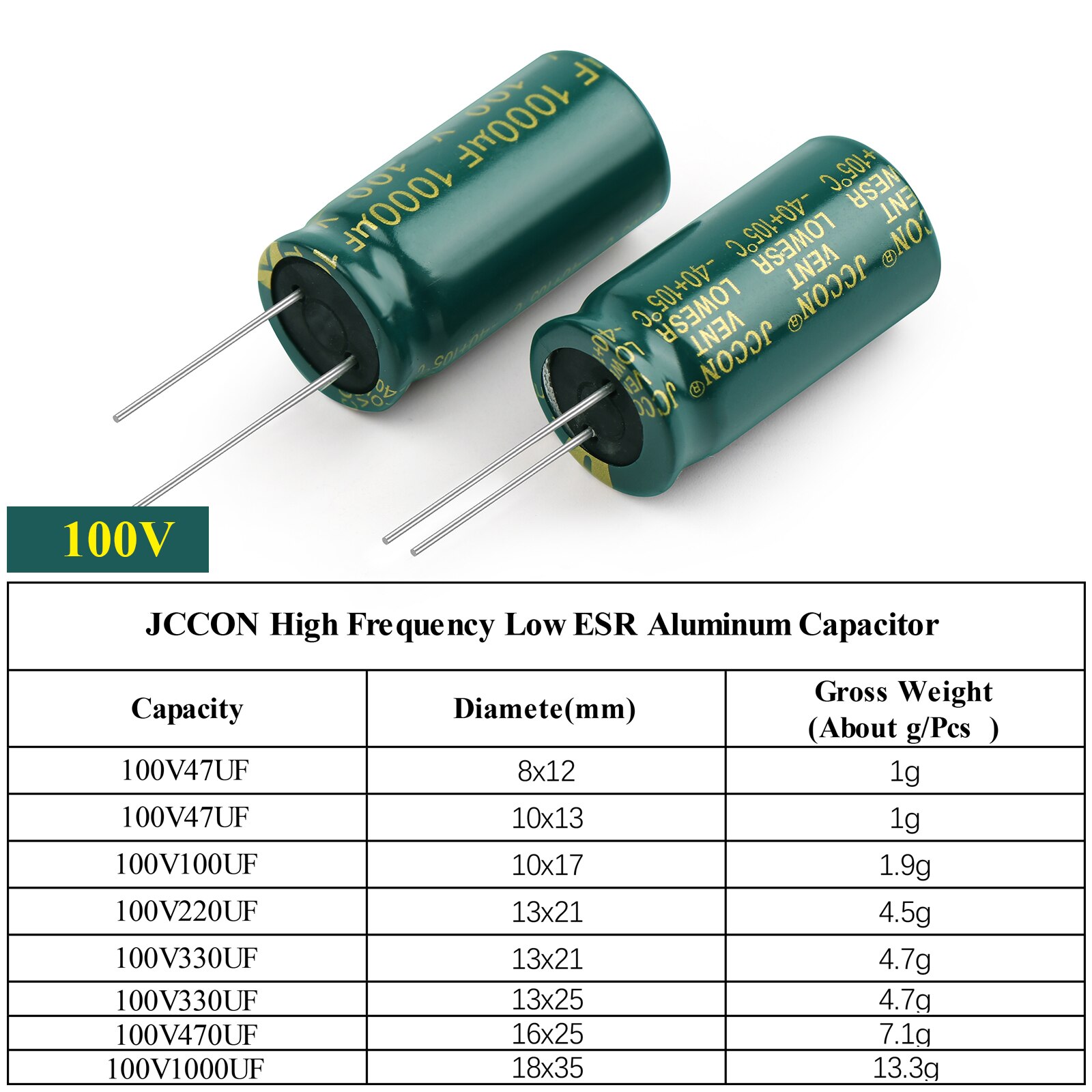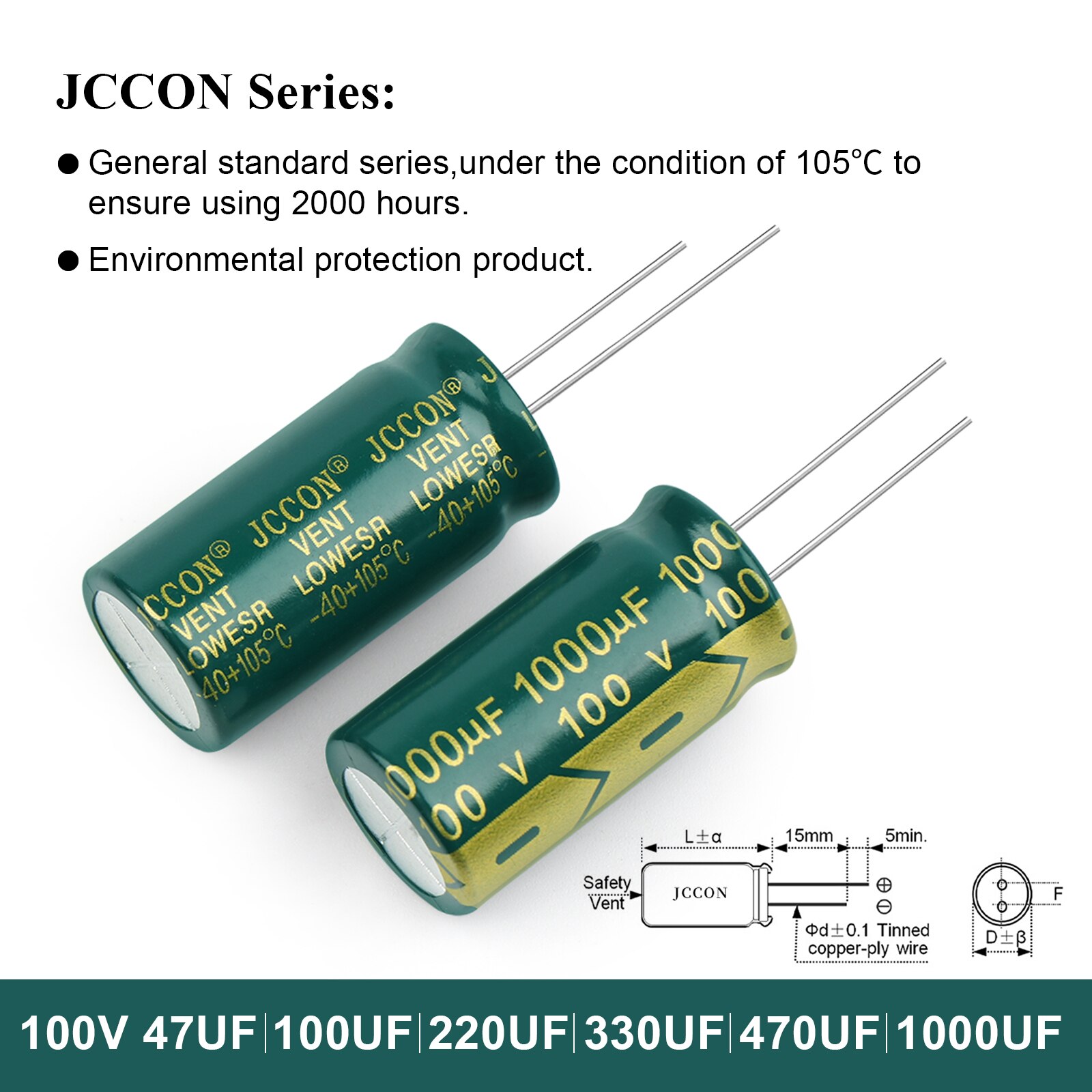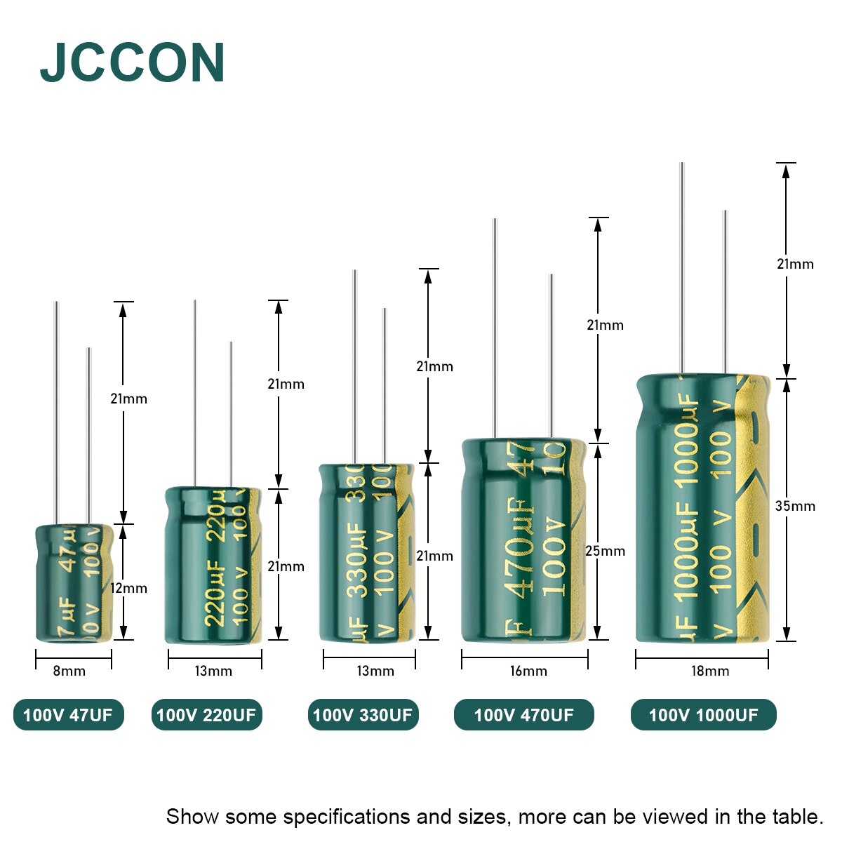 - Capacity: 47UF 100UF 220UF 330UF 470UF 1000UF