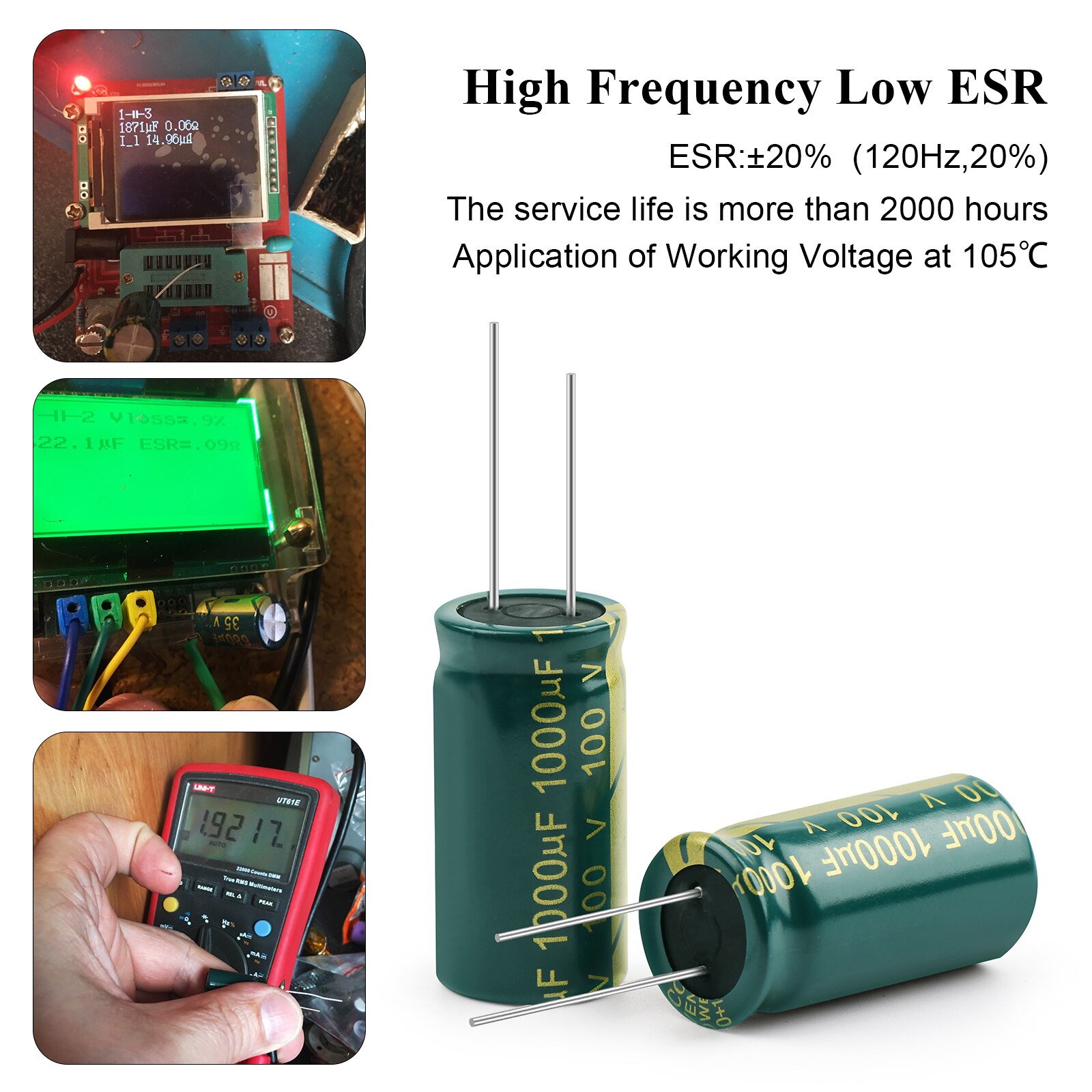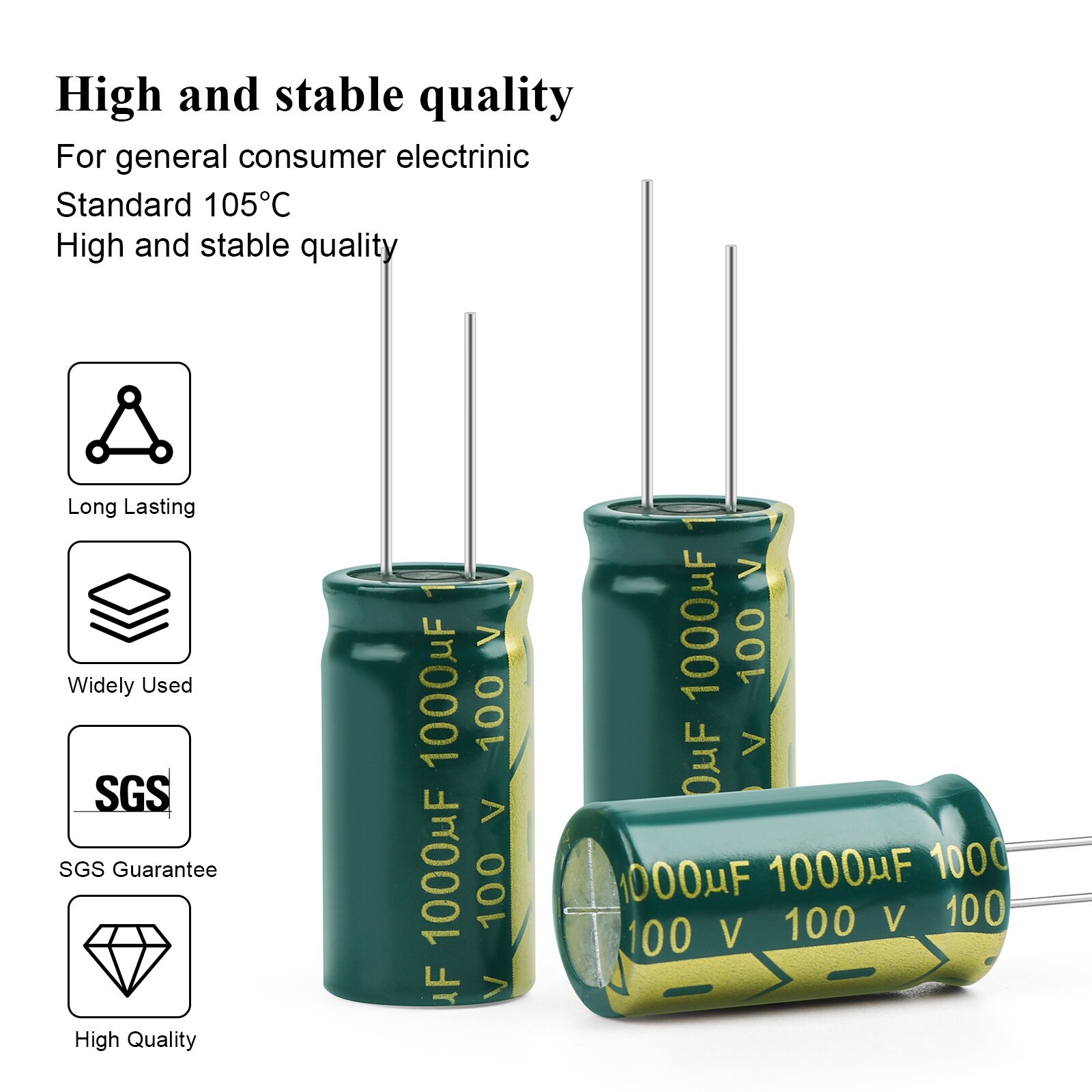 - Operating Temperature: 105℃ High Frequency Low resistance