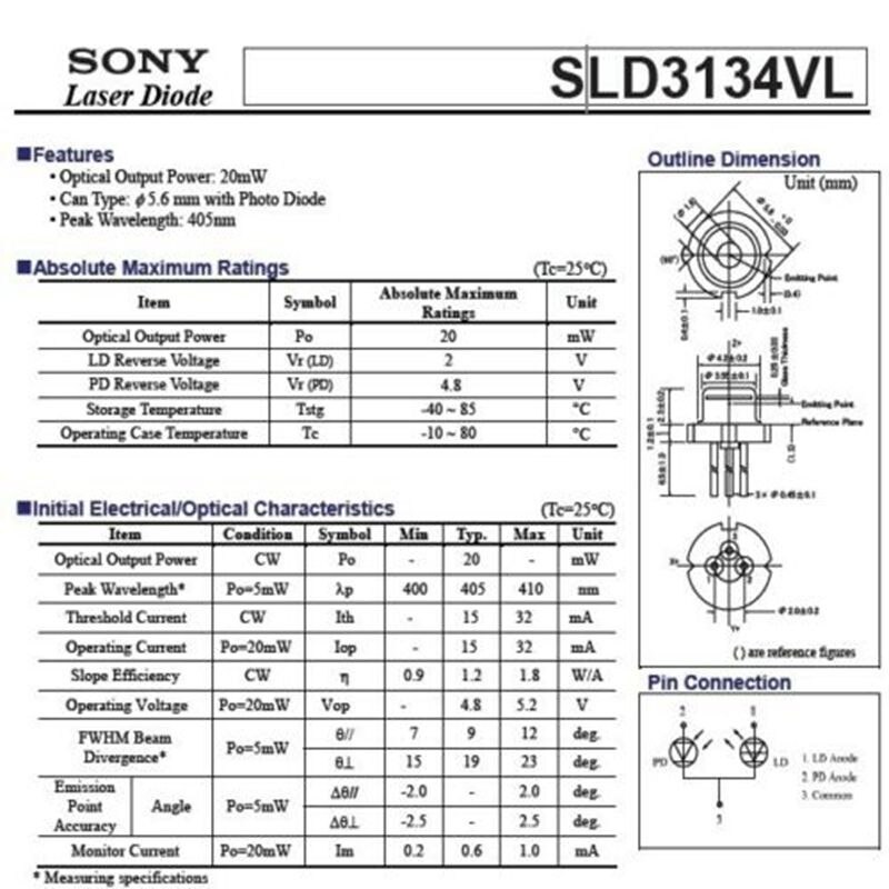 2pcs New Sony SLD3134VL 20mw 405nm 5.6mm Purple Blue Laser Diode TO-18 LD w PD