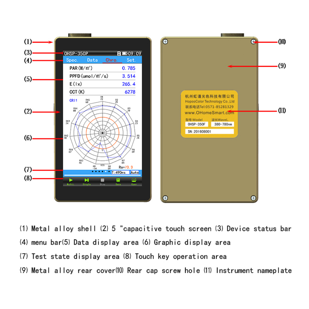 integrated spectrum, focusing on IR testing, With 5inch touch screen, Real-time display of measurement parameters and curves ,use convenient and fast.