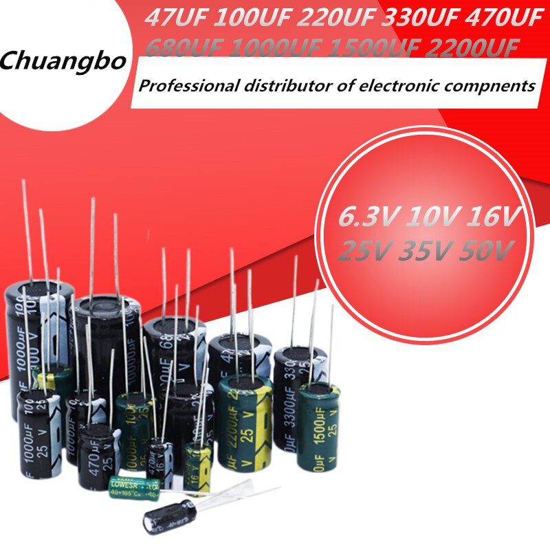 5-20pcs 47UF 100UF 220UF 330UF 470UF 680UF 1000UF 1500UF 2200UF 10V 16V 25V 50V-450V low ESR high frequency aluminum capacitor