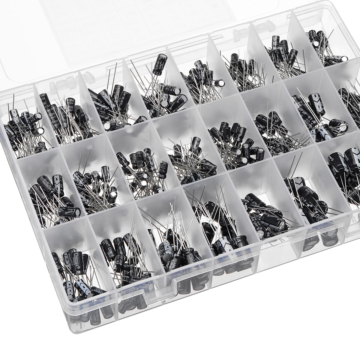 This set includes 24 most popular types of capacitors which could meet your basic needs.