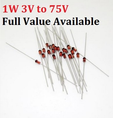 Include: 3.3V 4.7V 5.1V 6.2V 6.8V 8.2V 10V 12V 15V 16V 18V 20V 24V 30V