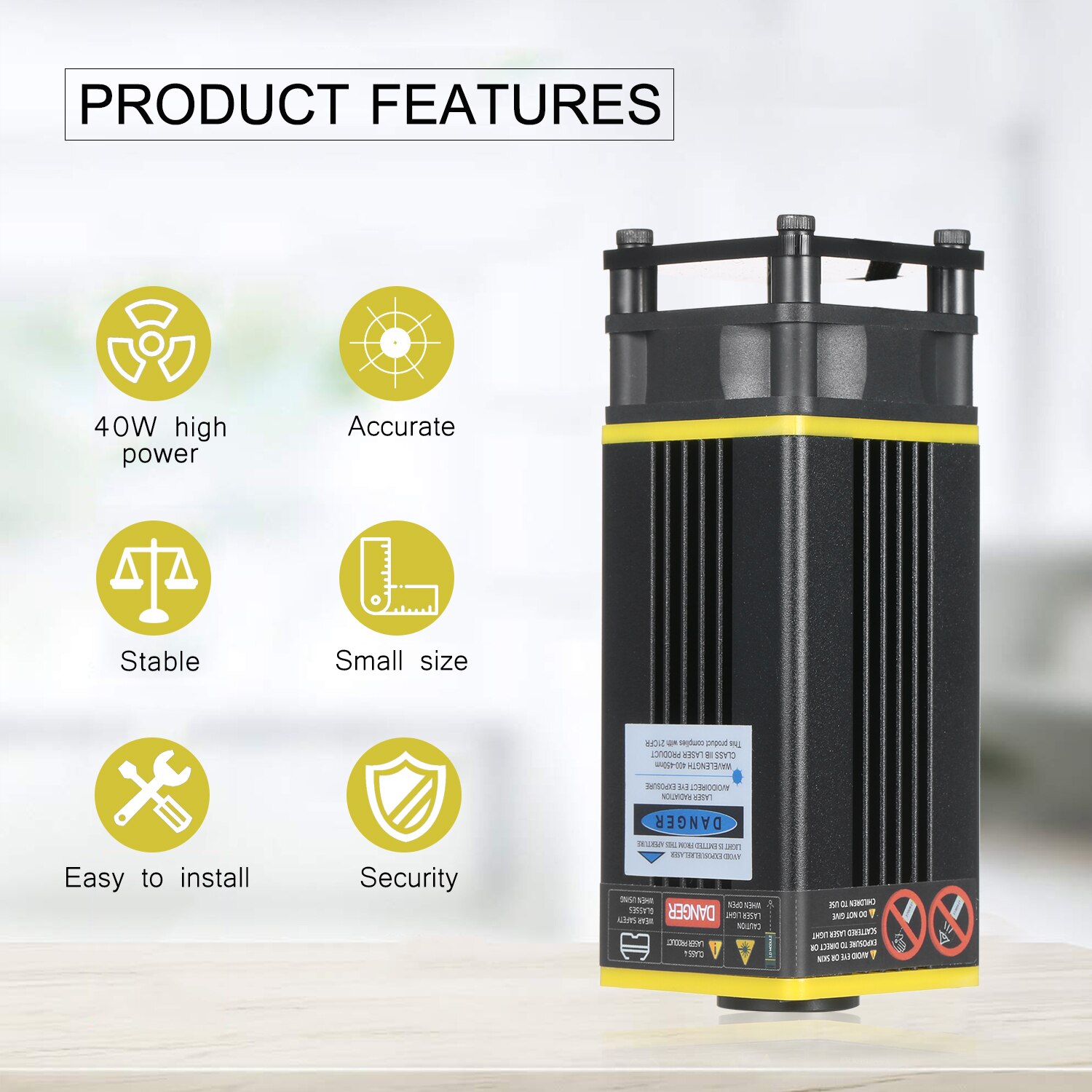 40W upgrade Blue Laser Module with Lower Loss and Higher Precision, which is designed for both 3D printer and CNC mill. With 448-462nm wavelength, it is 6-7 times faster and 3-4 times accuracy than the traditional laser module. There 5 powerful laser modual for choose, they can engrave and cut a variaty of materials.