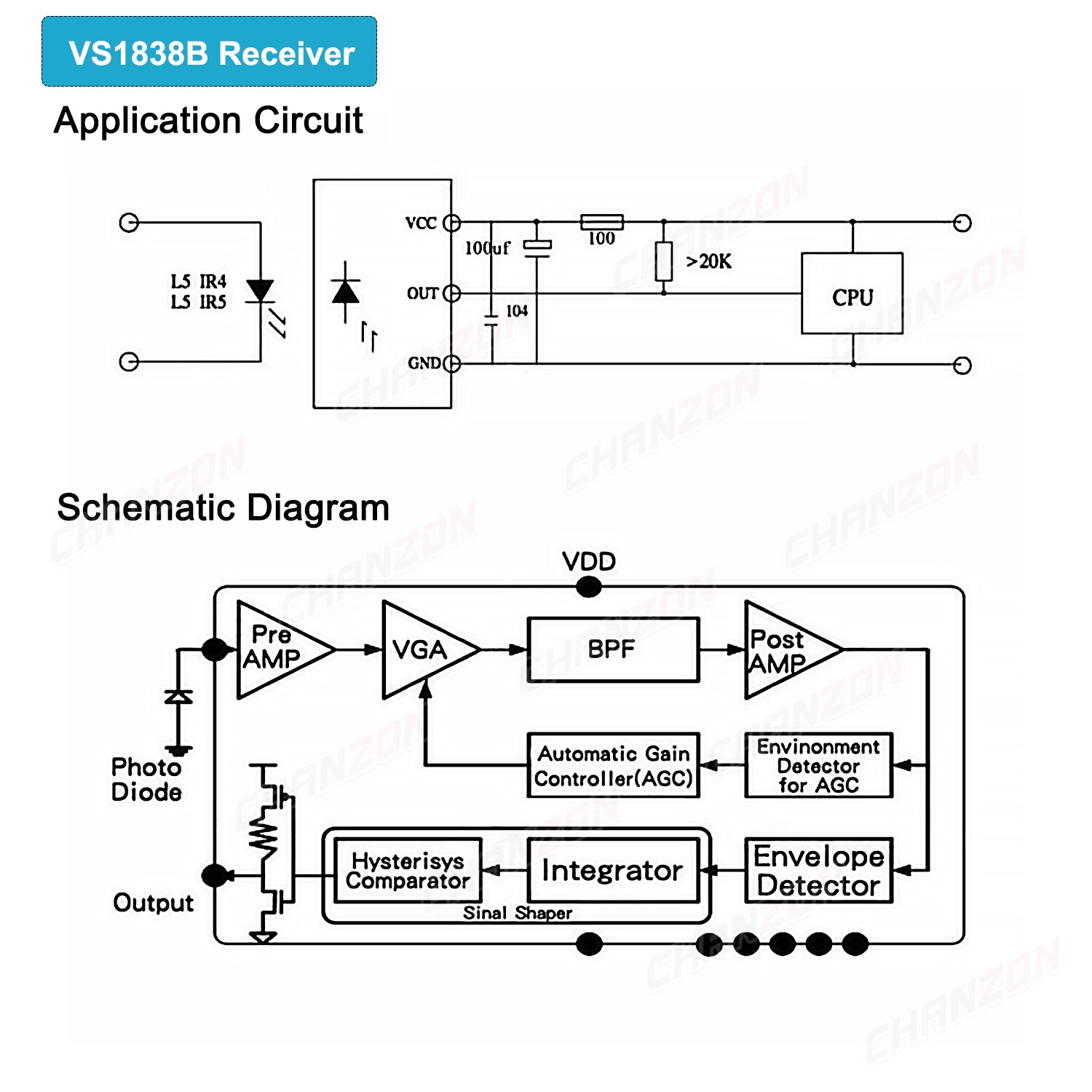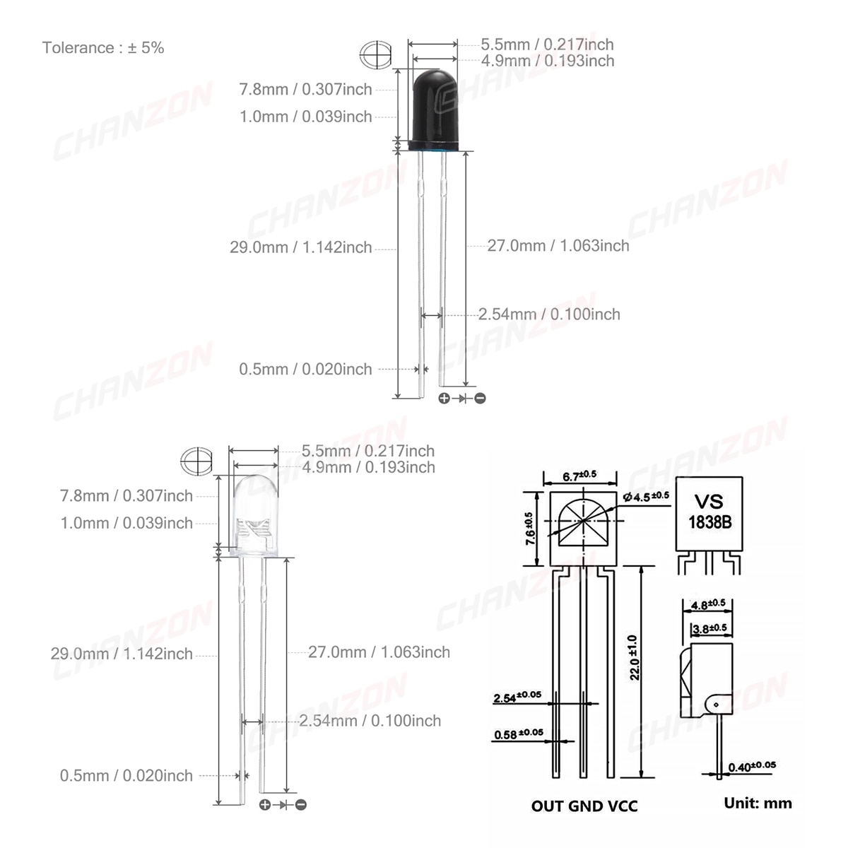 - Type: F5 940 nm Sender Receiver VS 1838 HX1838 TL1838 Photodiode