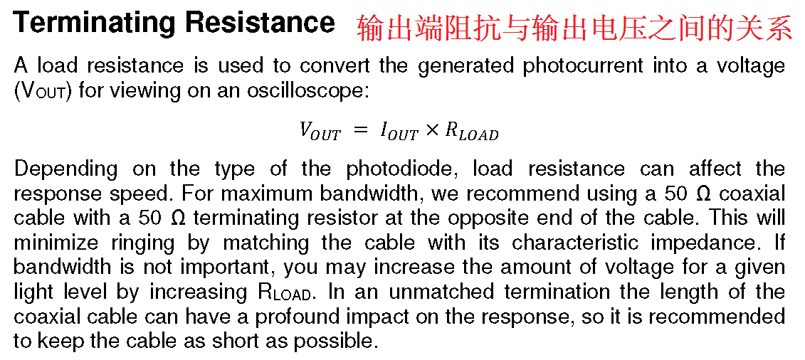 The relationship between bandwidth and response speed, shunt resistance and voltage can be referred to in English as shown in the picture above.
