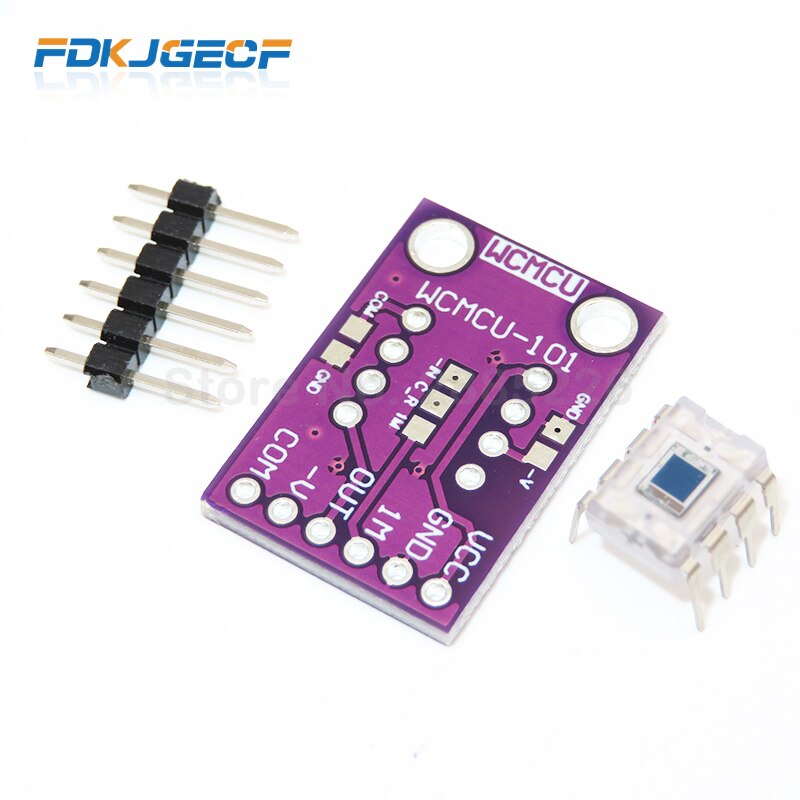 CJMCU-101 is an integrated chip built-in photodiode and transimpedance amplifier , the output voltage increases linearly with the light intensity . Amplifier is a single supply or dual power supply design , so can be used for battery-operated devices. Integrated photodiode and transimpedance amplifier on a single chip , discrete design, can reduce common problems, such as leakage current error , and since the gain peak noise caused by stray capacitance . And photodiode 0.09 * 0.09inch work in the photoconductive mode , to have a very good linearity and low dark current OPT101 working voltage of 2.7 to 36V, quiescent current of only 120uA .. do not need infrared .