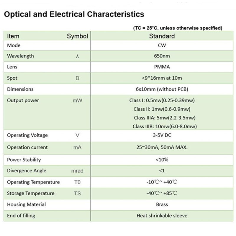 - Wavelength: 650nm