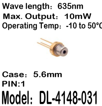 1-20pcs/lot DL-4148-031 4148-031 635nm 10mW 5.6mm 1-pin -10 to 50C operating temp Laser diode