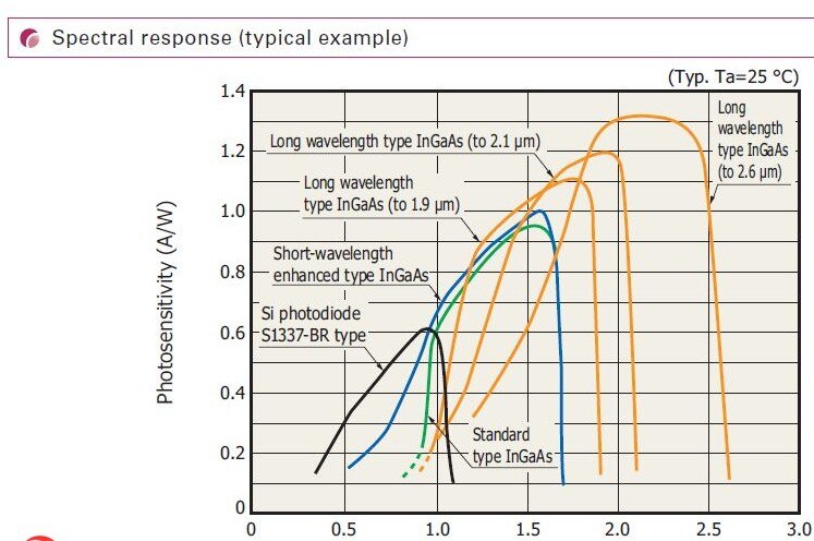 Spectral response range 0.9 to 2.6 μm