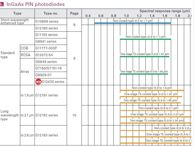 InGaAs PIN photodiode. Hamamatsu InGaAs Photodiode G12183-003K G12183-005K G12183-010K