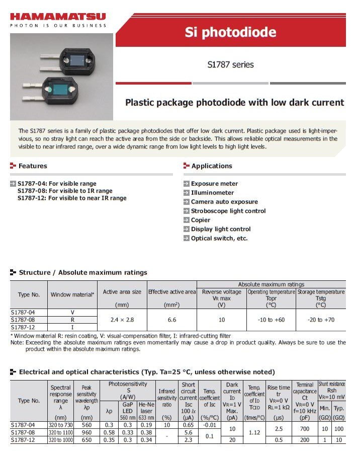 Si photodiode S1787-04 Plastic package photodiode datasheet
