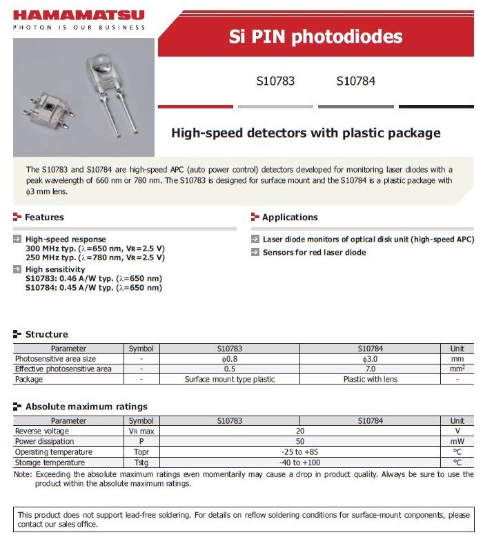 Hamamatsu Silicon PIN Photodiode S10783 S10784