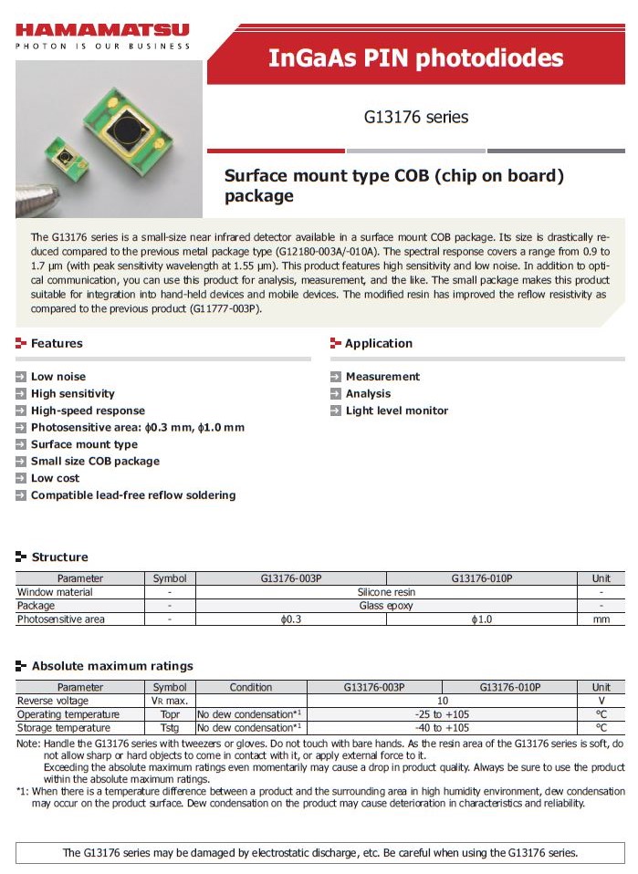 Hamamatsu SMT COB Package InGaAs Near-infrared Detector G13176-003P G13176-010P