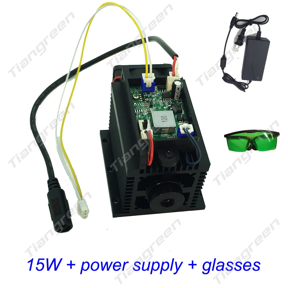 High Power 15w Laser Diode Module Lazer Head diy cutter engraver cnc machine for metal wood 450nm 15000mw 15 w TTL / Analog with DC 12V power supply and protective glasses.