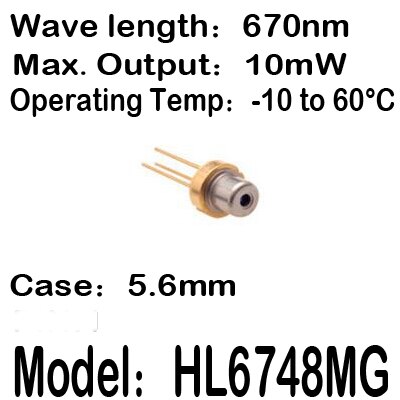 HL6748MG 670nm 10mW 5.6mm -10 to 60C operating temp Laser diode Type: Hand Tool Parts Model Number: standard is_customized: Yes Material: Aluminium-copper Alloy