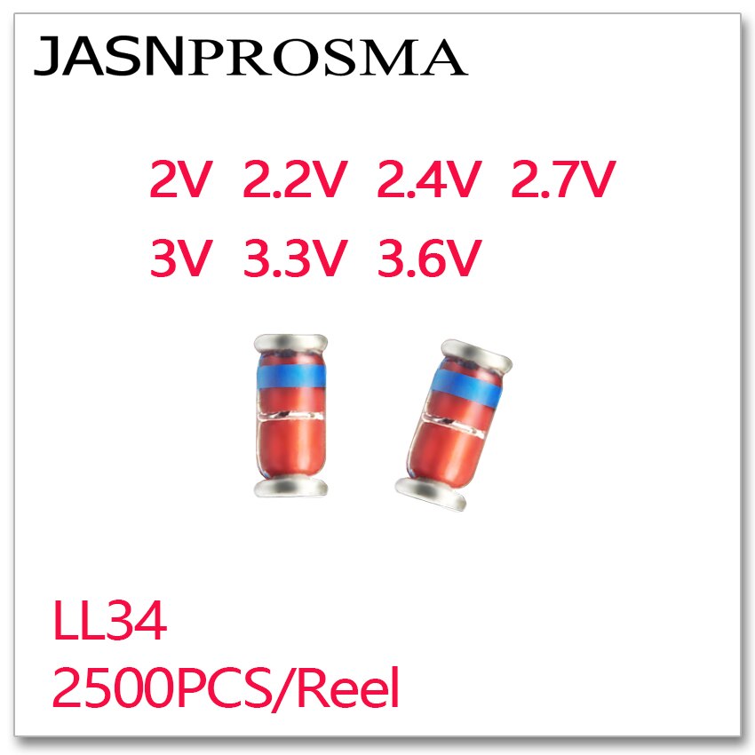 Brand Name: JASNPROSMA Compatible Brand/Model: None Origin: CN(Origin) Type: Silicon Planar Zener Diodes Size: LL34 1206/3216 RoHS: YES is_customized: yes Quantity: 2500PCS/Reel