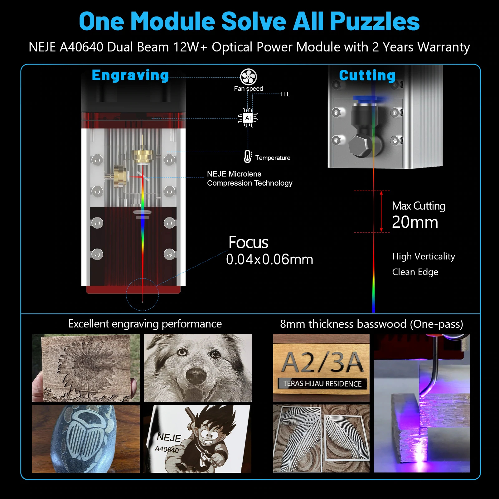 Specially designed for NEJE A40640 module, portable and reliable high pressure air nozzle, compatible with different focal lengths, rotating lens can have perfect auxiliary engraving and cutting effect at different focal positions, compatible with A40640 modules of different versions of lenses.