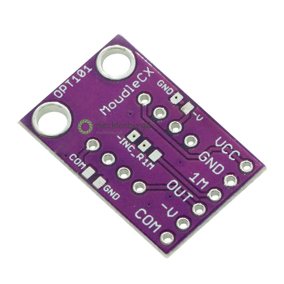 The OPT101 is a monolithic photodiode with on-chip transimpedance amplifier.The ingrated combination of photodiode and transimpedance amplifier on a single chip eliminates the problems commonly encountered in discrete designs, such as leakage current errors, noise pick-up, and gain peaking as a result of stray capacitance.Output voltage increases linearly with light intensity. The amplifier is designed for singlr or dual power-supply operation.