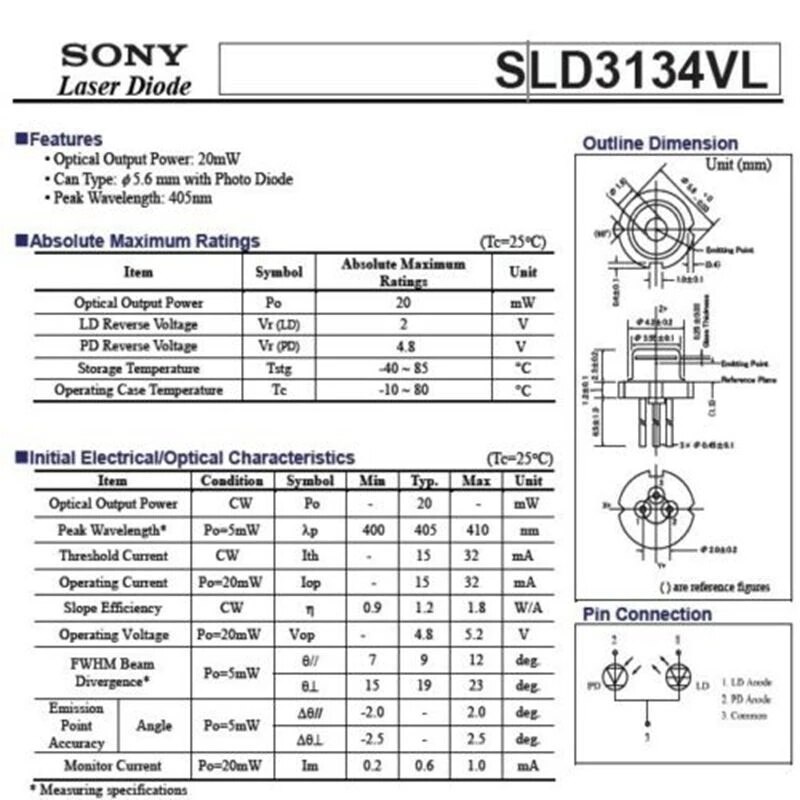 1pc New Sony SLD3134VL 20mw 405nm 5.6mm Purple Blue Laser Diode TO-18 LD w PD