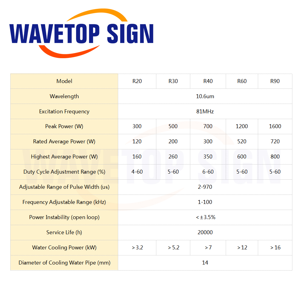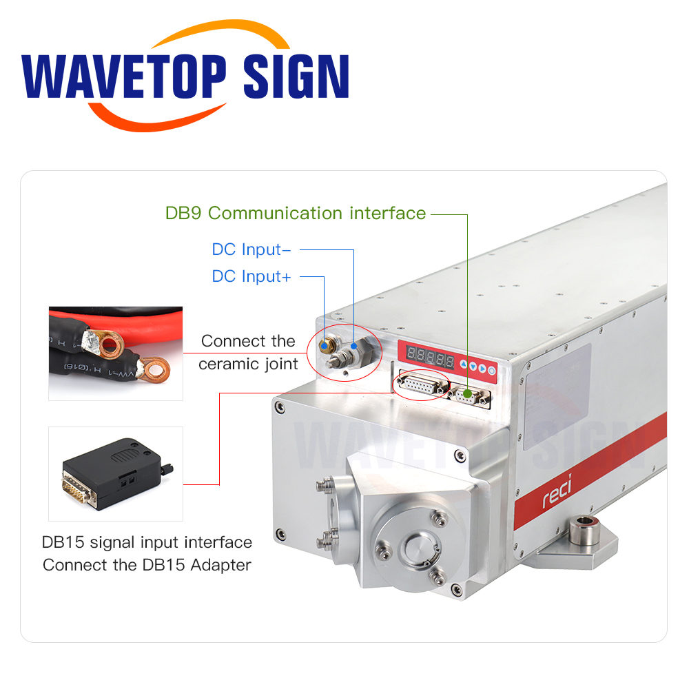 Reci RF series laser is sealed-off, modulated-pulse CO2 laser. They are mainly used for cutting non-metallic materials as well as cutting thin metal sheets. Under the condition of high pulse cutting, the thermal influence for non-metallic materials like leather is quite low, which stops the cutting edge from carbonization and keep its original natural color.RF Power Supply Specifications: