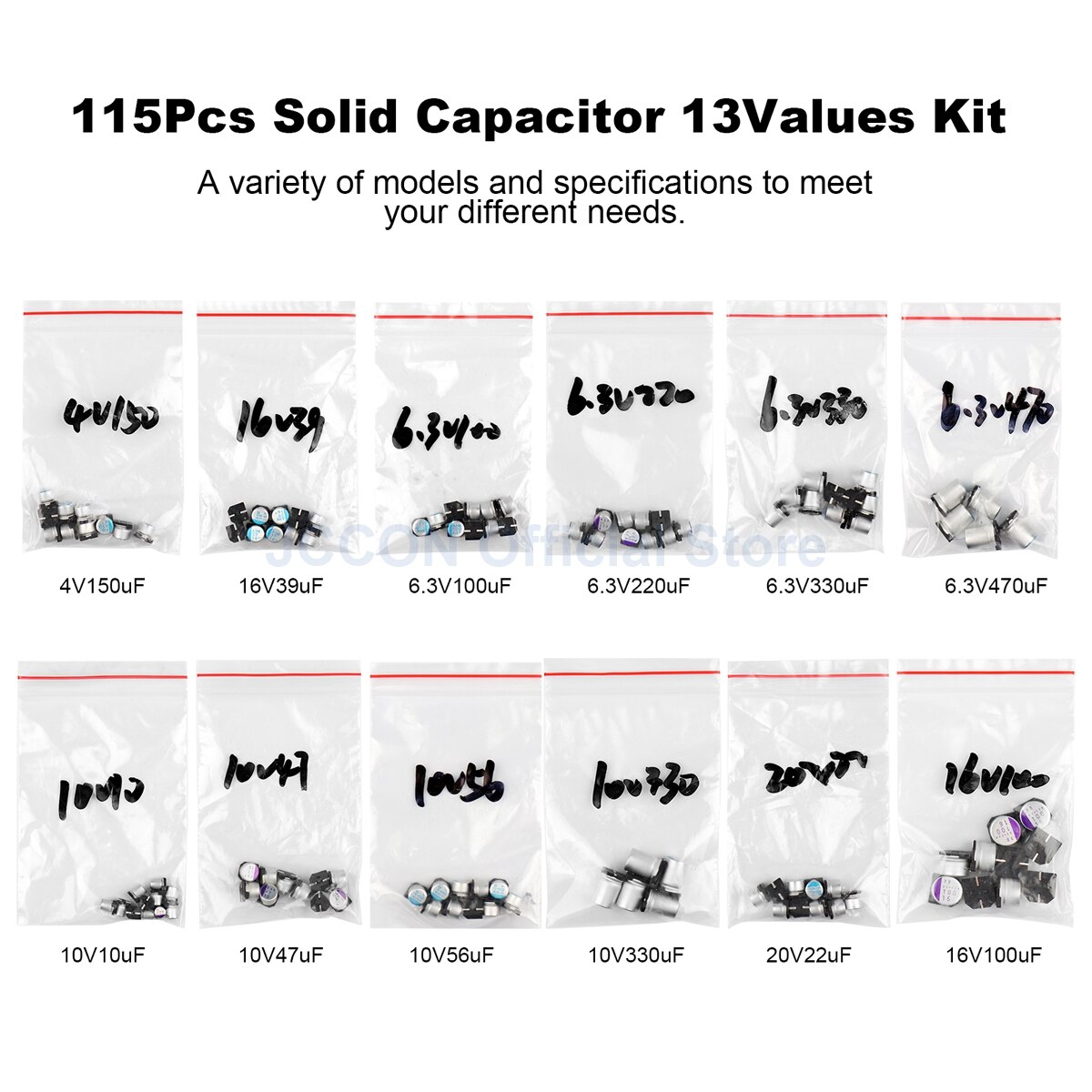 115Pcs 12Values Solid Capacitor Pack Kit (In bags)
