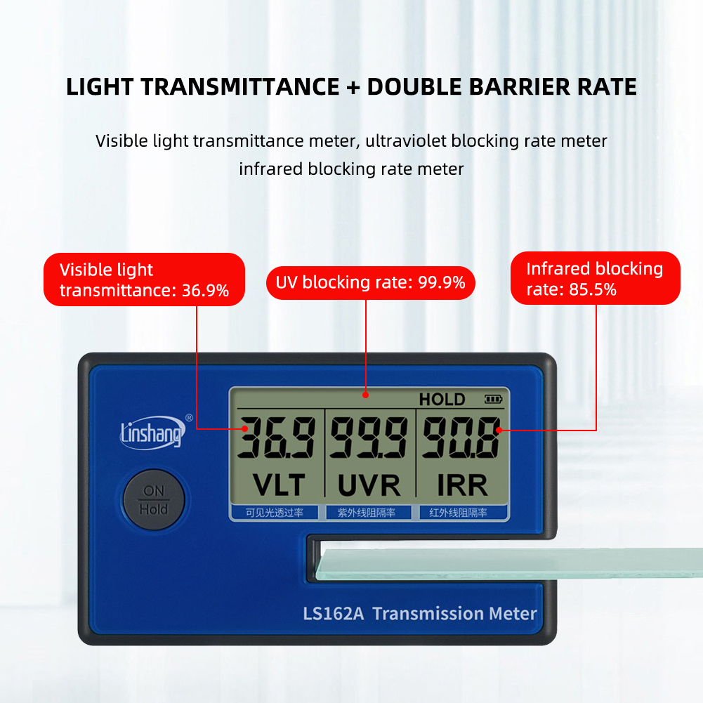 Yieryi Digital LS162A Transmission Meter Visible Light Measurement Tool VLT UVR IRR Tester Spectrometer for Automotive Glass